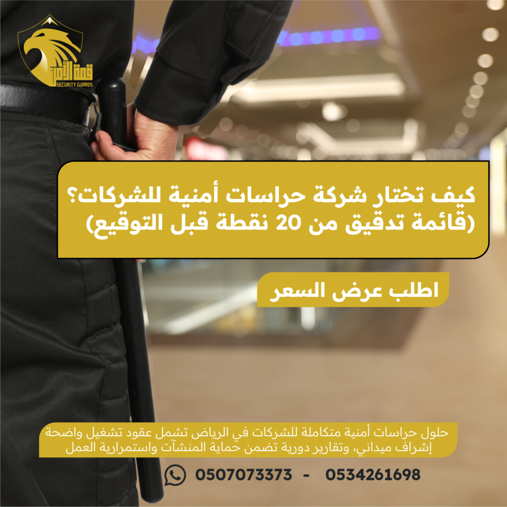 كيف تختار شركة حراسات أمنية لشركتك؟ قائمة تدقيق من 20 نقطة جوهرية قبل التوقيع